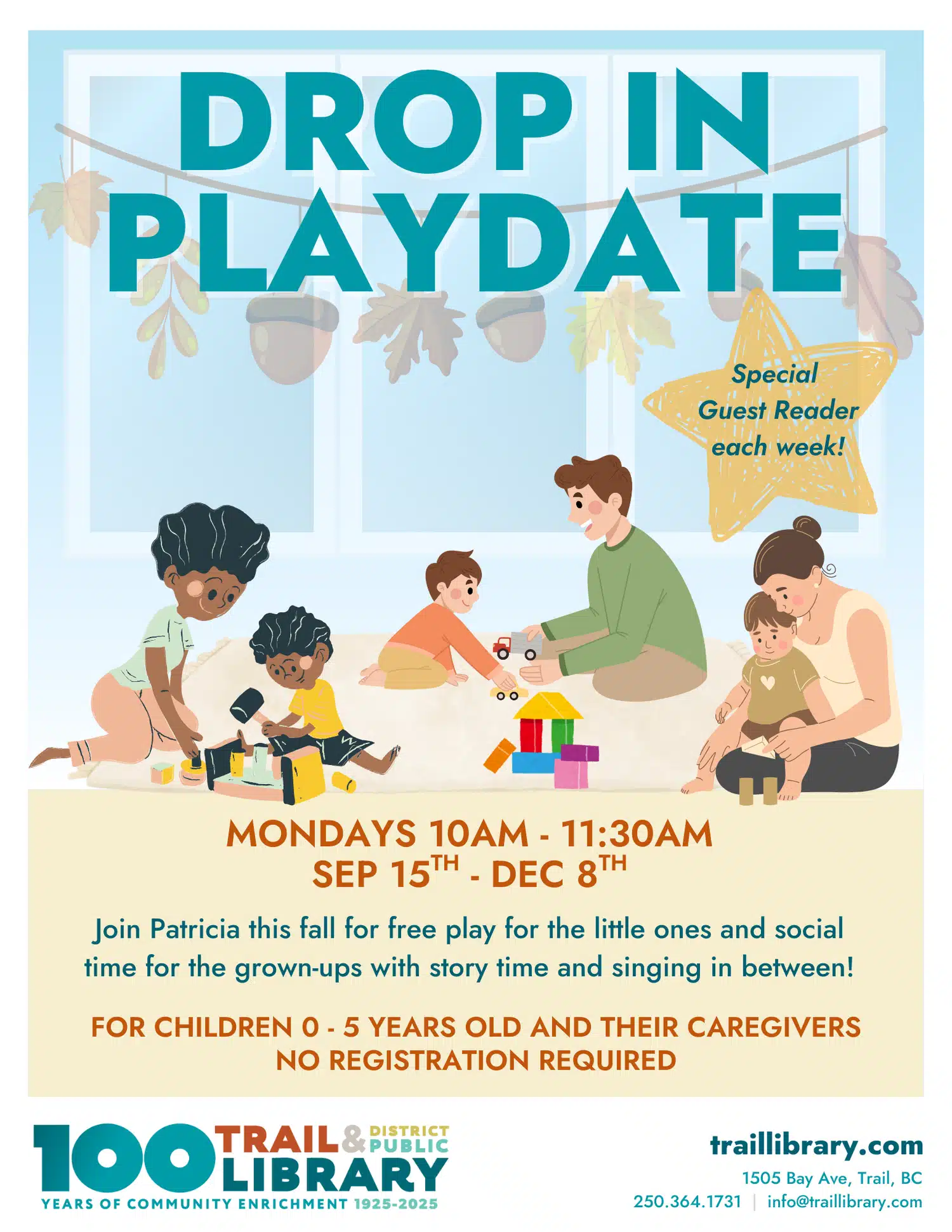 Join Patricia this fall for free play for the little ones and social time for the grown ups with story-time and singing in between!