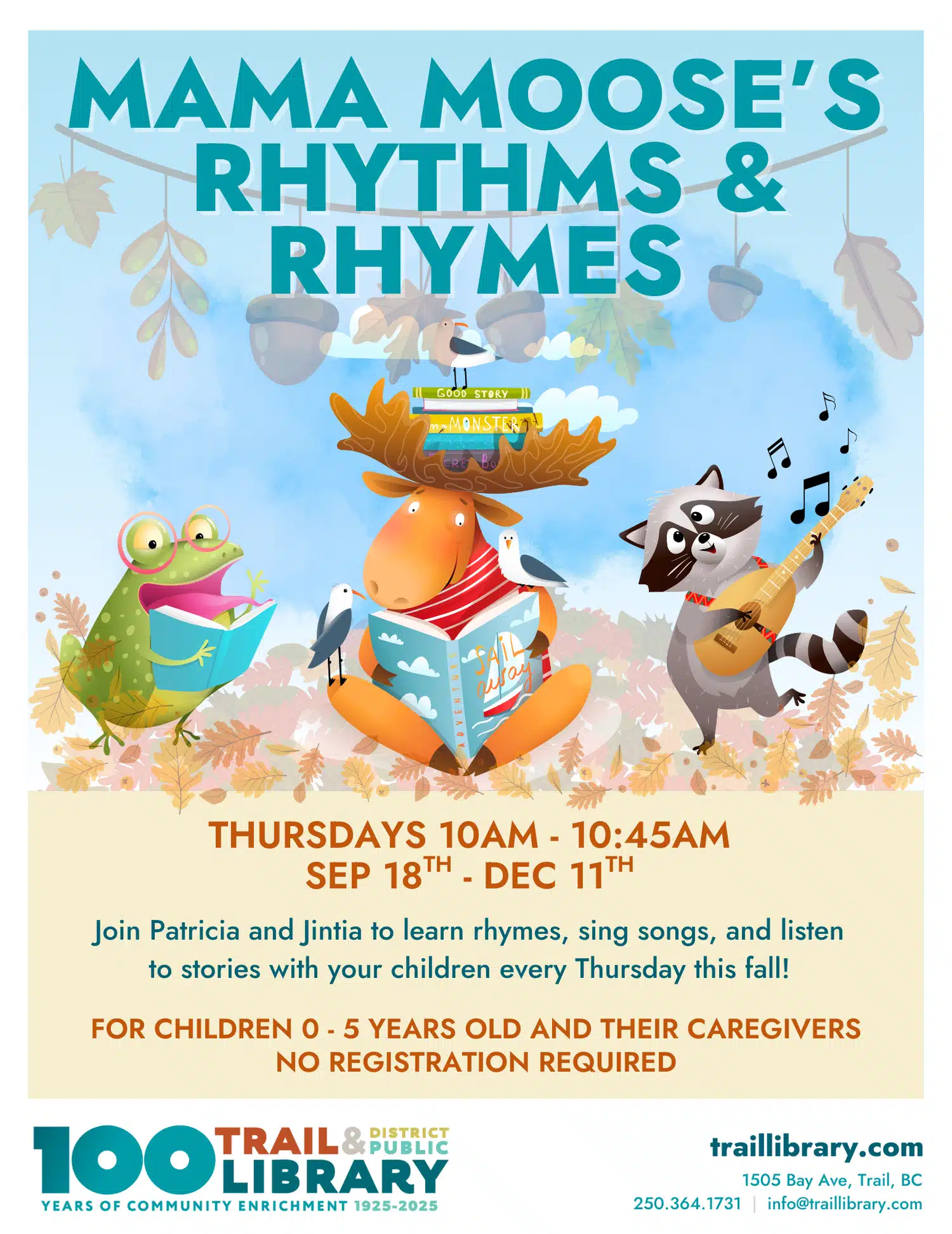 Join Patricia and Jintia to learn rhymes, sing songs, and listen to stories with your children this fall every thursday!