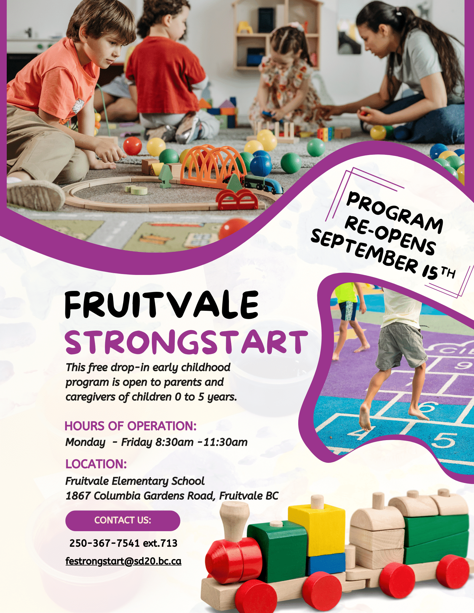 Fruitvale Strongstart drop- in early childhood program is open to parents and caregivers 0-5 years.